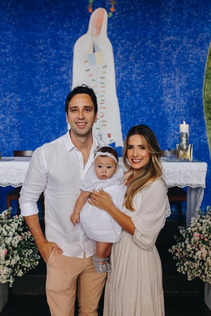 A Igrejinha Nossa Senhora de Fátima, na Asa Sul, foi o local escolhido pelo casal de empresários Daniel Cambraia e Rejane Machado para o batizado da filha Lara. Logo após a celebração, que contou com a presença apenas dos familiares do bebê, todos foram recebidos para um brunch, a residência dos pais, em Brasília.