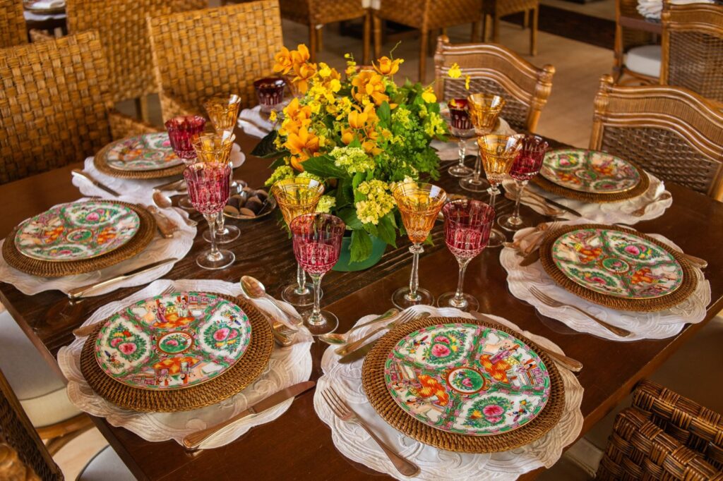 “Nossa amada Lilian estava prestes a fazer 90 anos de idade e sempre foi muito festeira, agora que ela está se recuperando da viuvez, do esposo e companheiro de uma vida, que nos deixou em novembro do ano passado. Então aproveitei que ela me deu recentemente uma linda louça antiga chinesa para criar um motivo para comemorar. Falei que iria usar a louça para celebrar os 90 anos dela que estavam chegando e ela aceitou”, disse a anfitriã Melissa Gontijo.