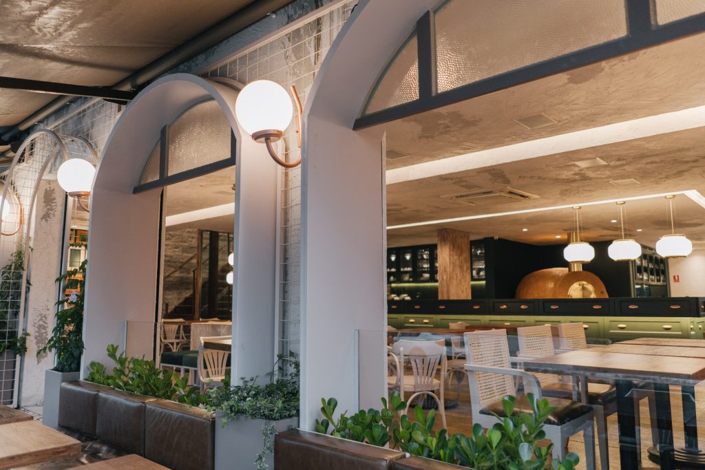 Com previsão de 50 lugares em sua abertura, a casa terá dois andares e uma área externa convidativa para um happy hour. O escritório Babel Arquitetura assina o projeto que terá na fachada pintura em tom claro, janelas em arco com serralheria rústica e eras. As mesas ganharam pátina branca e algumas cadeiras em palha dão ar artesanal ao ambiente. Luminárias pendentes em vidro são elementos antigos também presentes no aconchegante espaço.