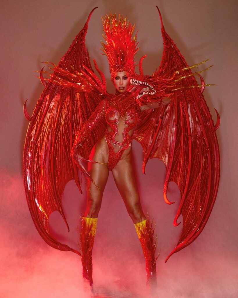 Após aparição no camarote, a rainha de bateria da Gaviões da Fiel seguiu para a concentração. Para a avenida, ela usou uma fantasia intitulada Dragão de São Jorge, produzida pelo estilista Henrique Filho, que assinou todas as suas fantasias de carnaval. O look contou com styling de Pedro Sales e beleza Krisna Carvalho com maquiagem Beleza na Web. A produção causou frisson no sambódromo do Anhembi, na capital paulista.