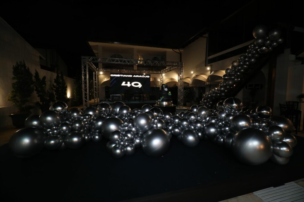- A decoradora Fabi Gatti assinou a ambientação com destaque para as cores preto e prata. Enormes bolas na cor prata se destacavam na área da festa. O buffet Rio 40º foi escalado para elaborar o jantar da comemoração, que contou com as presenças de familiares e amigos de longa data dos aniversariantes, entre políticos e autoridades da cidade.