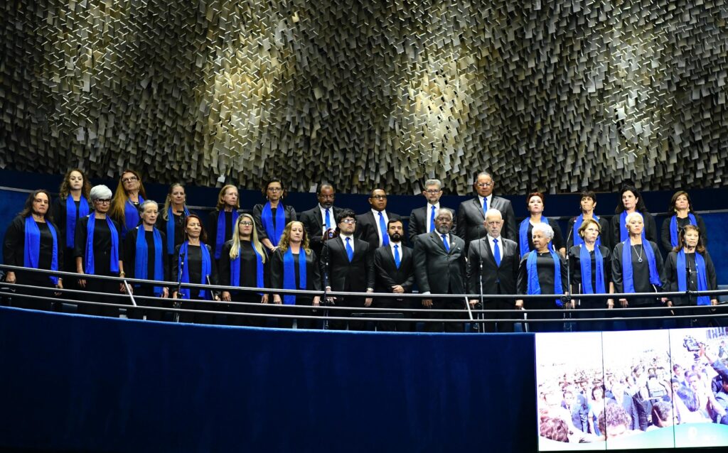 A sessão especial contou com as presenças de representantes do governo federal, do Supremo Tribunal Federal (STF) e também do Superior Tribunal Militar (STM). Logo no início, o ex-presidente José Sarney foi homenageado com uma placa entregue pelo presidente do Senado, senador Davi Alcolumbre. Honraria dada sob aplausos ao político pela sua atuação e por seu legado na redemocratização do Brasil. O deputado federal Aécio Neves recebeu a condecoração em nome do avô, Tancredo Neves.