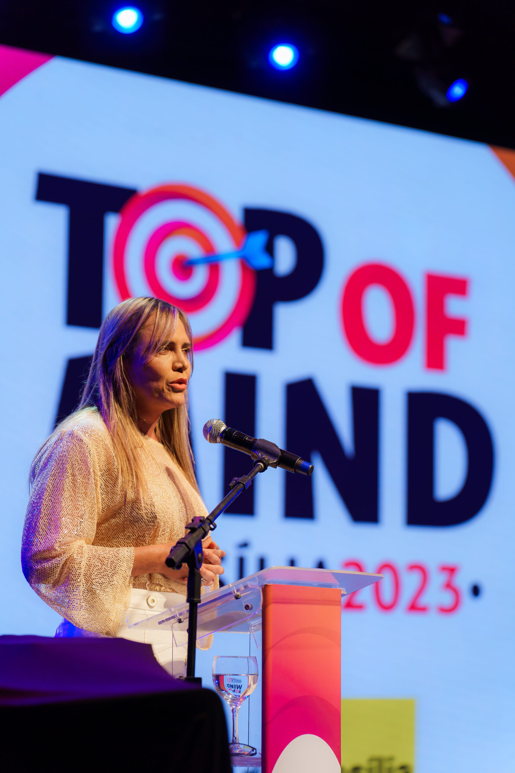 Dona da Ótica Diniz, Aline Diniz, premiada em 2023, lembrou de todos os 17 prêmios do Top Of Mind que a marca já recebeu, e sobre a sua importância. “Quando você é lembrado, e está na mente do consumidor, realmente a mensagem que se passa para o restante das pessoas é que aquela empresa desenvolve um bom trabalho. O prêmio passa essa credibilidade”, disse.