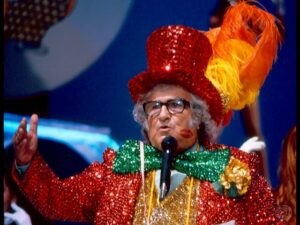 Quem nunca ouviu o bordão popular: “Quem não se comunica, se trumbica”? Essa expressão foi proferida exaustivamente pelo maior comunicador brasileiro das décadas de 1950 a 1980, Chacrinha. Após conquistar o rádio, ele alcançou sucesso na TV Tupi e, posteriormente, na TV Globo com o programa Cassino do Chacrinha. Apelidado de “O Velho Guerreiro” em uma homenagem de Gilberto Gil na música “Aquele Abraço”, Chacrinha foi autor de diversos outros bordões, como “Terezinhaaa?”, substituindo o nome de sua patrocinadora Clarinha após sua falência, e introduziu frases como “Na televisão nada se cria, tudo se copia” e “Quem quer bacalhau?”, enquanto distribuía peixes no auditório, brincando com a predileção brasileira por brindes.