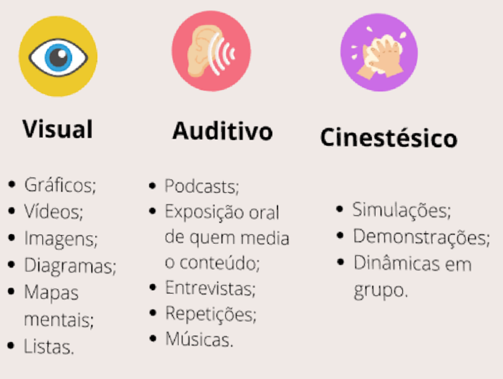 Na Academia de Comunicação e Oratória Verbalize, nós atendemos os três nichos de alunos: auditivos, visuais e cinestésico; no entanto, focamos mais em atividades bem práticas, envolvendo a participação ativa dos alunos. Além disso, reforçamos a importância da revisão periódica do conteúdo das nossas aulas.