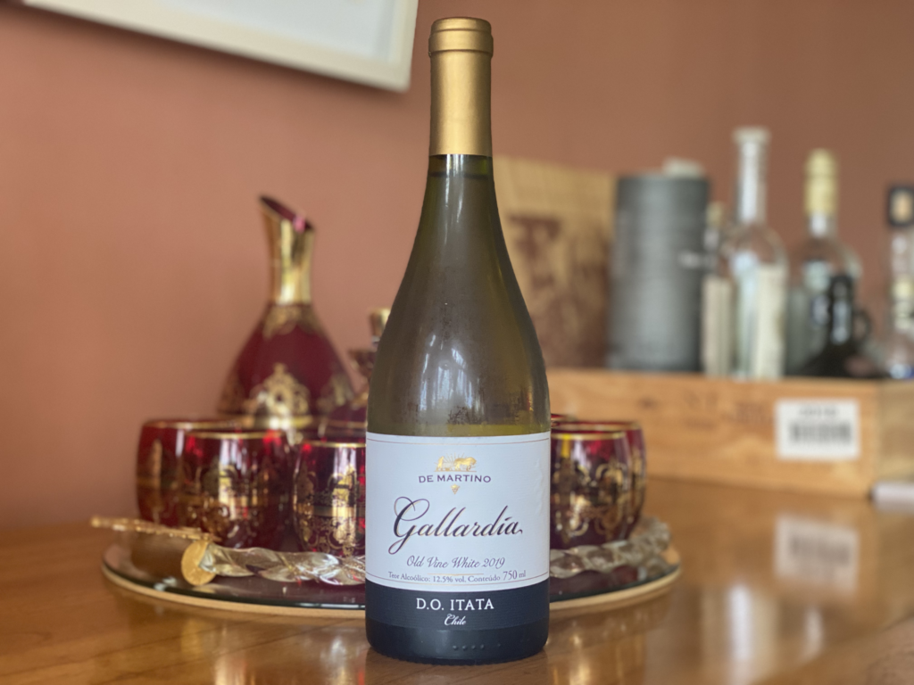 De Martino Gallardía Old Vine White, Valle del Itata, elaborado com as uvas Muscat e Corinto. Gallardia é uma homenagem aos vinhedos litorâneos do Vale do Itata, localizado na região sul do Chile. O vinhedo com cerca de 100 anos de idade está plantado em pé-franco, ou seja, sem enxertia, e com as duas variedades misturadas no campo, que são colhidas juntas e co-fermentadas. É um vinho fresco, seco e aromático, com um final mineral e persistente.