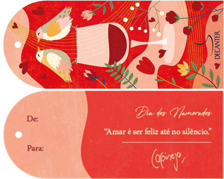 Mestre nas questões do coração, Carpinnejar escreveu quatro versos para acompanhar, em uma linda tag, o vinho escolhido para o amado. Na compra de um dos dez rótulos selecionados para a ação, basta escolher a composição que descreve melhor sua declaração de Dia dos Namorados e pronto: o presente está completo.
