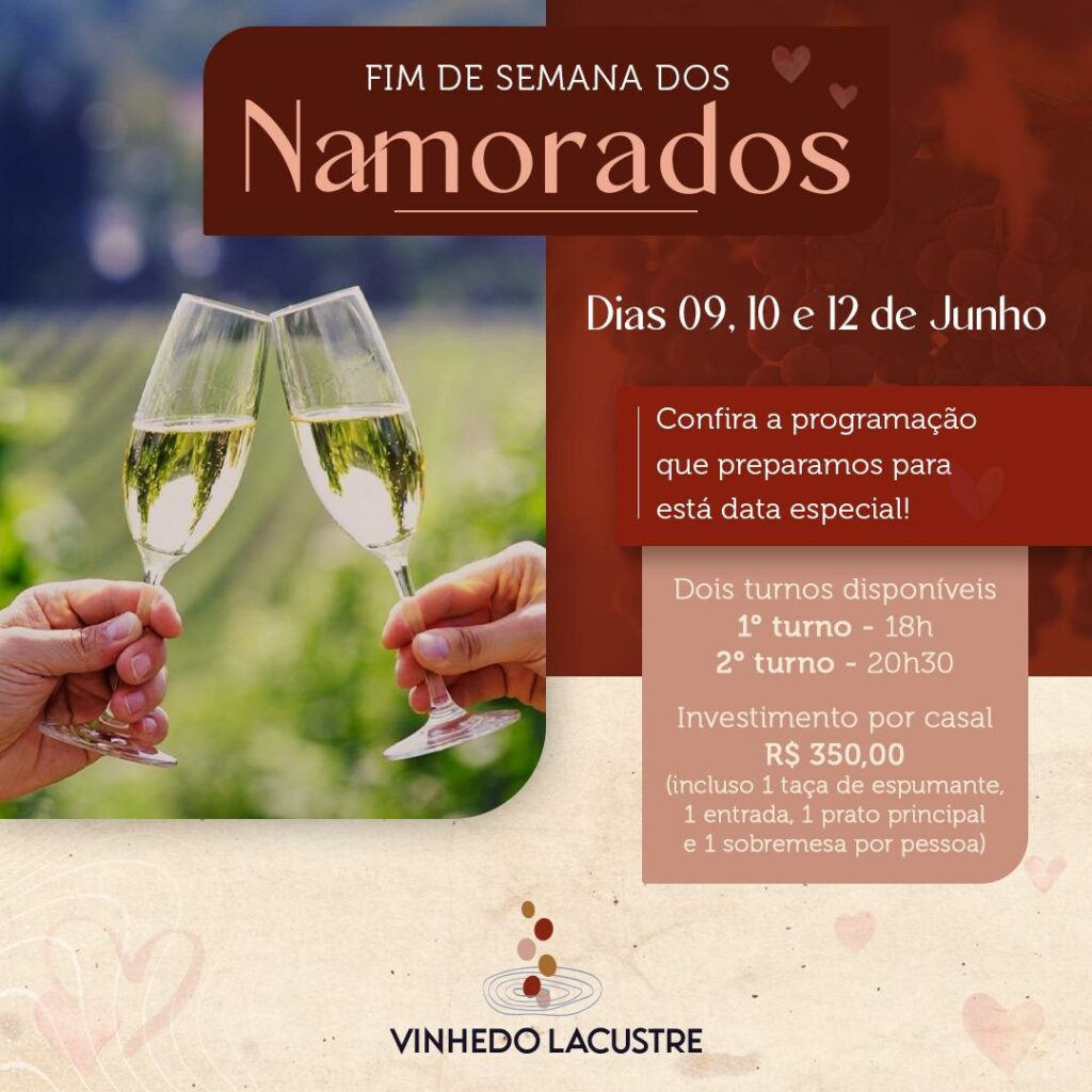 Não há nada mais romântico do que celebrar o Dia dos Namorados em um vinhedo, com o cenário ideal para fortalecer o amor entre duas pessoas. O Vinhedo Lacustre, no Lago Norte, preparou uma programação especial para comemorar esta data, durante os dias 09, 10 e 12 de junho, com jantar especial preparado pelo chef Rodrigo Cabral.