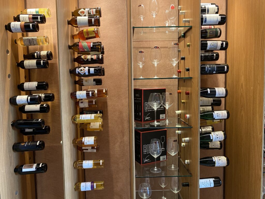 A exposição das garrafas penduradas pelo gargalo em nichos de madeira torna a visualização fácil pelo cliente. Logo na entrada tem os vinhos do Novo Mundo com uma variedade ampla de vinhos da Argentina, Chile, Estados Unidos, Austrália e África do Sul. Do outro lado estão os vinhos do Velho Mundo, destaque para o vinho Studio, da vinícola do ator Brad Pit, além dos conhecidos e famosos Vega Sicilia, Lynch & Bages, Pintia, Viña Tondonia, dentre outros.