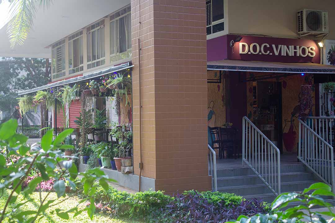 DOC Vinhos Gastrô, situado na Asa Norte, além de loja é bar de vinhos, com cardápio de petiscos para acompanhar a experiência. Mais de 70% do portfólio de vinhos é nacional, com preços convidativos.