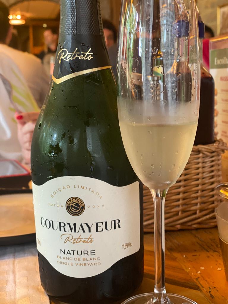 Não poderia deixar de compartilhar a experiência que foi degustar o espumante Coumayeur Retrato, Nature, Blanc e Blanc, Single Vineyard. Espumante nature, elaborado 100% com a casta Chardonnay. Contém bolhas super finas e delicadas, aromas de maçã verde e um leve toque de abacaxi. Em boca é bastante elegante, com um final longo e persistente.