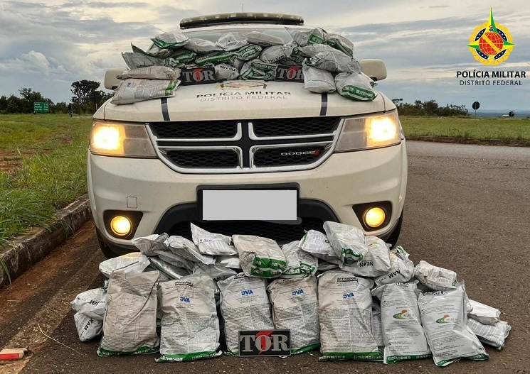Na tarde dessa quinta-feira (23), insumos agrícolas importados de forma ilegal foram apreendidos pela polícia na DF 345, km 05, sentido GO, na região de Planaltina. O material vinha do Paraguai e foi fabricado na China, como especificado na embalagem. Não existia nenhum documento ou nota fiscal da carga.