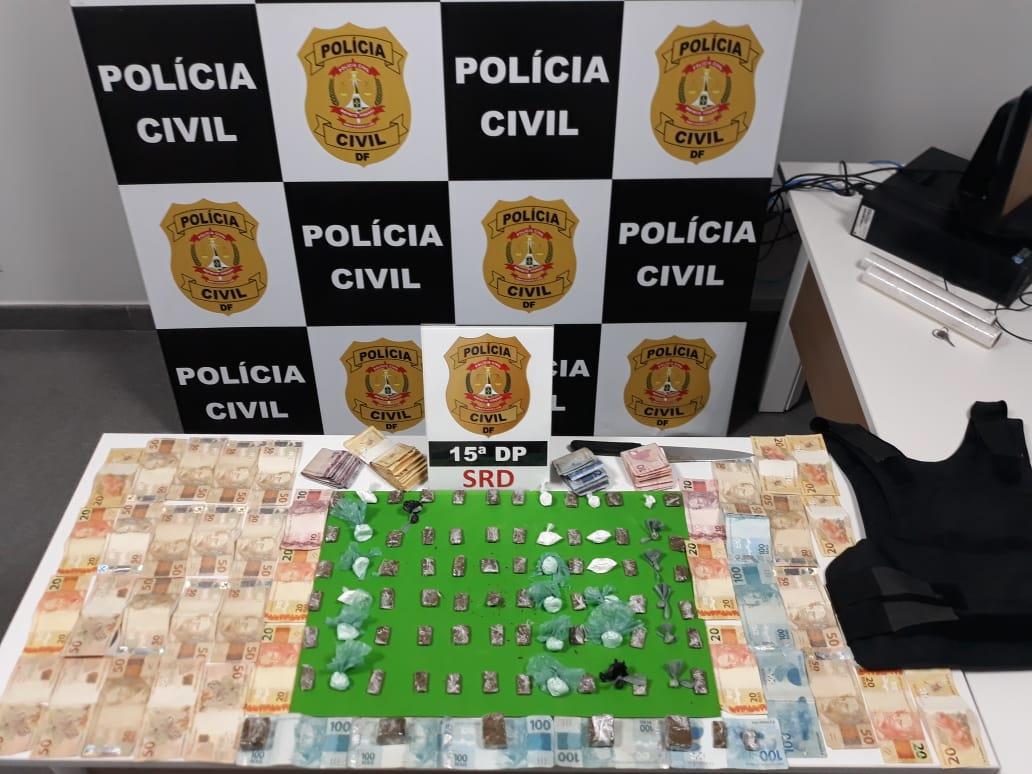 Além das drogas, a 15ª DP apreendeu um colete à prova de baladas e mais de R$ 3 mil em espécie. O suspeito foi recolhido ao cárcere da Polícia Civil (PCDF).