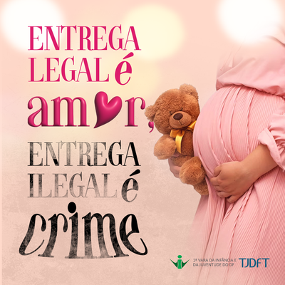 A 1ª Vara da Infância e da Juventude do Distrito Federal (1ª VIJ-DF) lança a campanha Entrega legal é ato de amor, entrega ilegal é crime. A ideia é conscientizar as mulheres do direito à entrega em adoção por meio da Justiça Infantojuvenil, sem constrangimento e com respeito ao sigilo, o que garante a segurança tanto da gestante como do bebê, prevenindo o abandono, a venda, o infanticídio ou qualquer outra prática que coloque em risco mãe e filho. Para além disso, o objetivo é informar a população como um todo sobre o instituto da entrega voluntária para adoção, de modo a ajudar na divulgação dessa possibilidade legal com o respeito às mulheres que optem por tal decisão.
