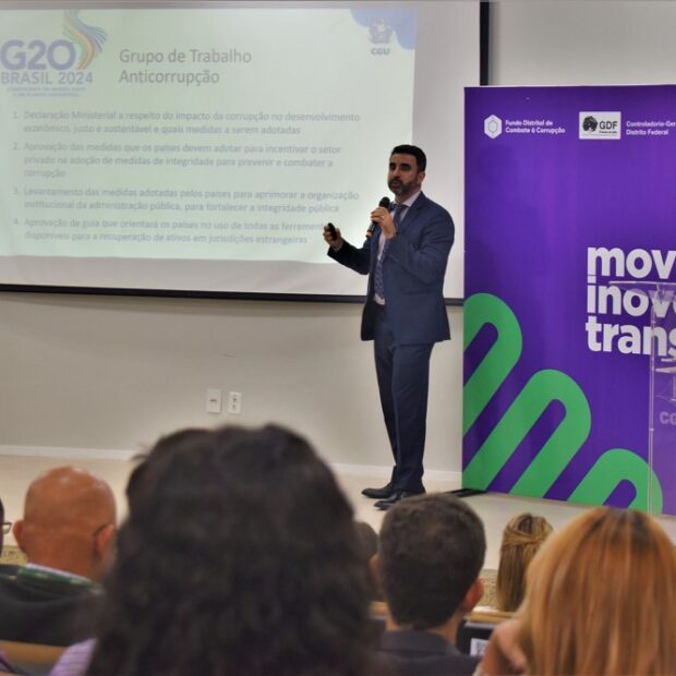 As palestras do quarto dia da 8ª Semana de Controle da Controladoria-Geral do Distrito Federal (CGDF) abordaram a atualização de assuntos relacionados ao combate à corrupção nos âmbitos nacional e internacional, ao gerenciamento de dados e ao controle interno. As apresentações, no auditório da Escola de Governo do DF (Egov), também foram transmitidas online, no canal da CGDF no YouTube.