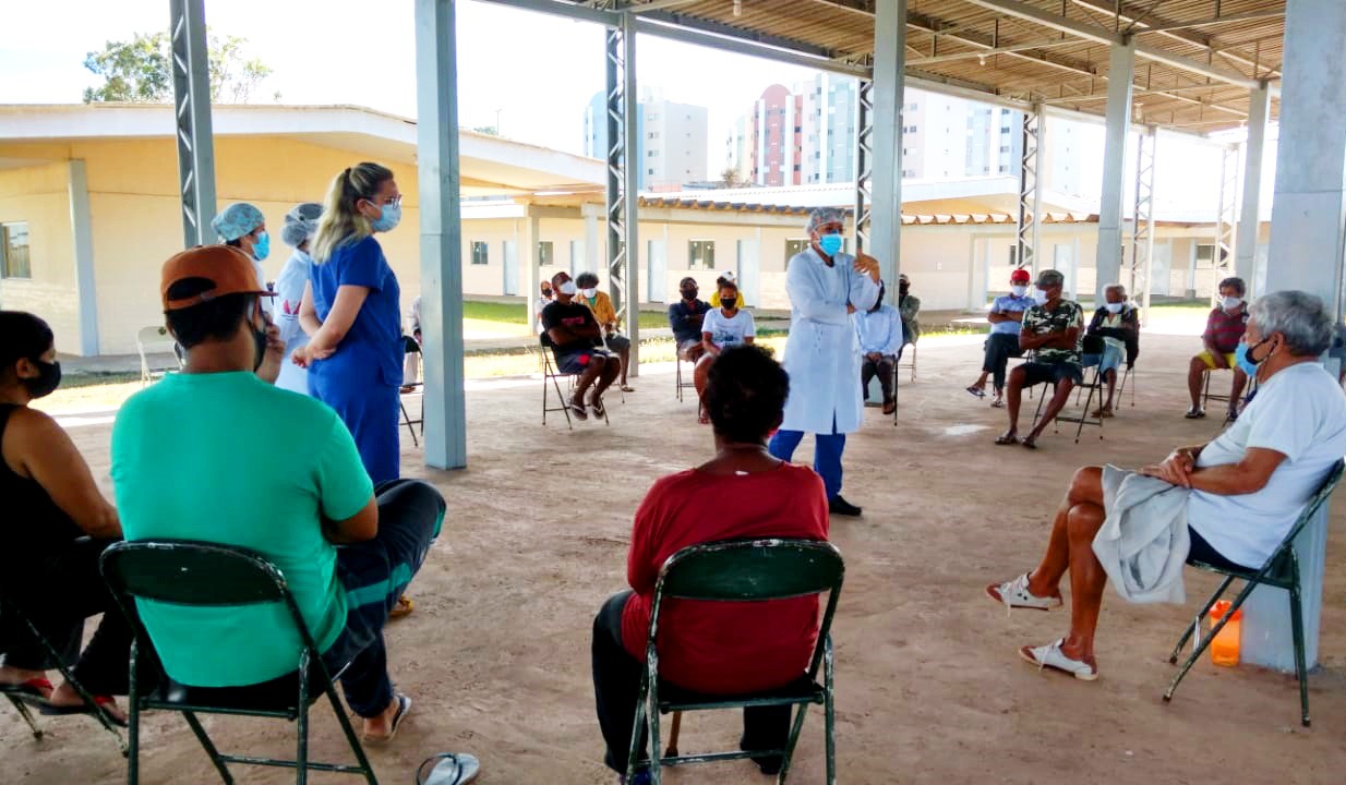 “Estava com alguns problemas com os acolhidos em relação à higiene. Por isso, perdi à equipe do Consultório na Rua que viesse dar uma palestra na unidade, falar sobre a Covid-19. Quando é a equipe de saúde falando, é diferenciado. Tinha um deles isolado com sintomas. Os profissionais fizeram um teste para ver se ele realmente estava com novo coronavírus. Eles ensinam a importância do uso da máscara, do álcool em gel. Foi bem proveitosa a visita”, relata a gerente da Unidade de Acolhimento para Adultos e Famílias (Unaf) Areal, Marcia Caetano Vasconcelos, que recentemente recebeu os profissionais para reforçar as medidas de prevenção da Covid-19 dentro da unidade.