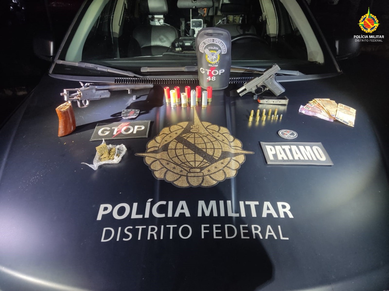 Dois homens foram presos por policiais militares do Patamo e do Grupo Tático Operacional do 28º Batalhão (Gtop 48) por porte ilegal de arma de fogo no Riacho Fundo II. Na madrugada desta quarta-feira (23), a PMDF recebeu a denúncia de disparos na QN 7E, de acordo com testemunhas o autor estava em um carro vermelho.