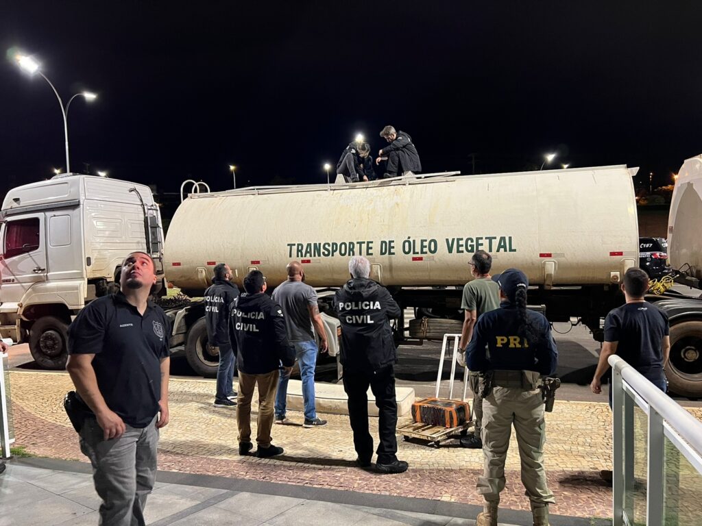 Os narcóticos estavam escondidos no tanque de caminhão bi-trem de óleo vegetal em Cristalina.