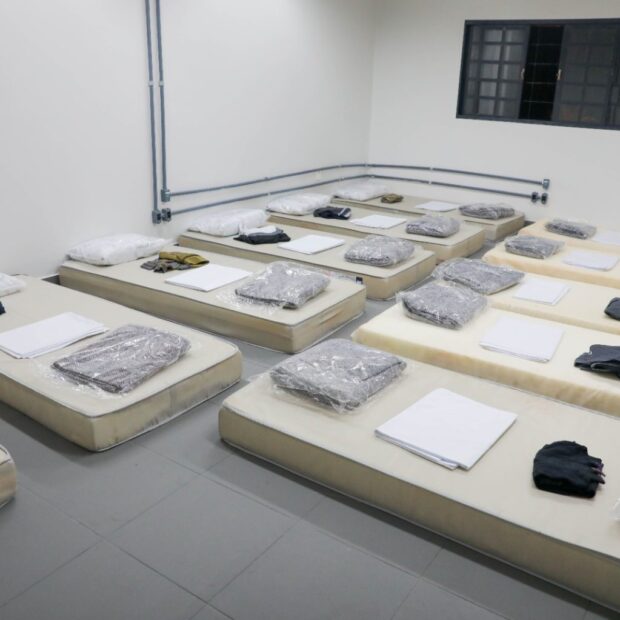 Lá, foram preparados quatro quartos, sendo um exclusivo para mulheres e crianças. Até 50 pessoas poderão utilizar o espaço por noite, das 19h às 7h, com fechamento dos portões às 22h.