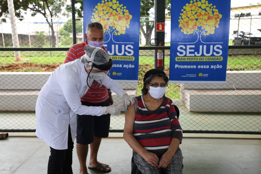 A quinta edição do programa Sua Vida Vale Muito Vacinação, desenvolvido pela Secretaria de Justiça e Cidadania (Sejus) realizou a imunização de quase 400 idosos de 72 e 73 anos, na Praça dos Direitos, na QNN 13, em Ceilândia. A vacinação aconteceu durante dois dias, na quinta-feira, (18) e nesta sexta-feira (19), das 9h às 17h.