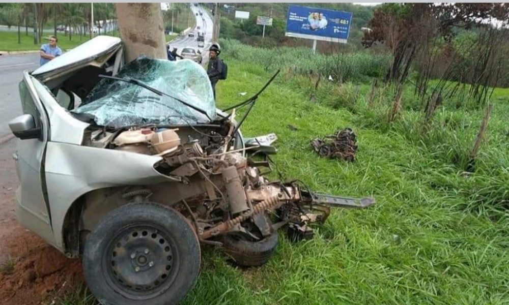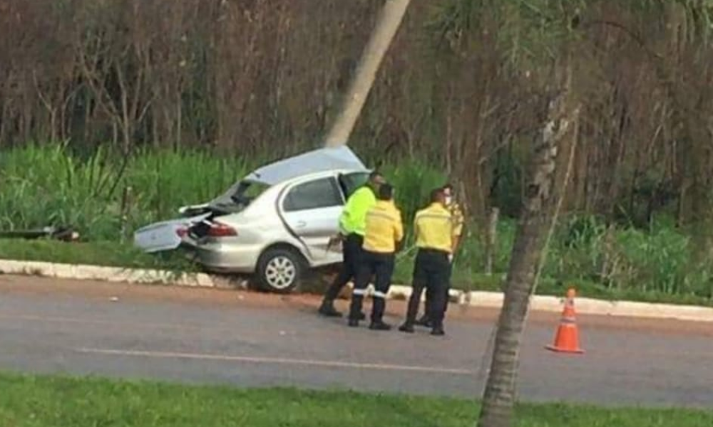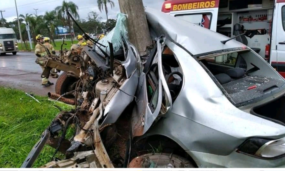 Uma colisão de um Voyage prata com um poste ocorreu na manhã desta sexta-feira, 05. O acidente ocorreu na Pista Velha da QNL, sentido Samambaia.