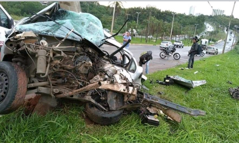 Uma colisão de um Voyage prata com um poste ocorreu na manhã desta sexta-feira, 05. O acidente ocorreu na Pista Velha da QNL, sentido Samambaia.
