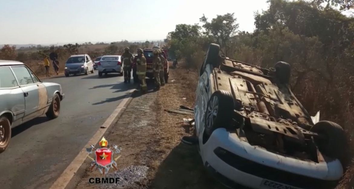 No carro que capotou estavam três pessoas. Dois deles estavam deambulando em cena e foram atendidos e transportados ao Hospital Regional do Paranoá (HRPA), mas estavam conscientes, orientados e estáveis. O terceiro ocupante foi transportado pelo SAMU.