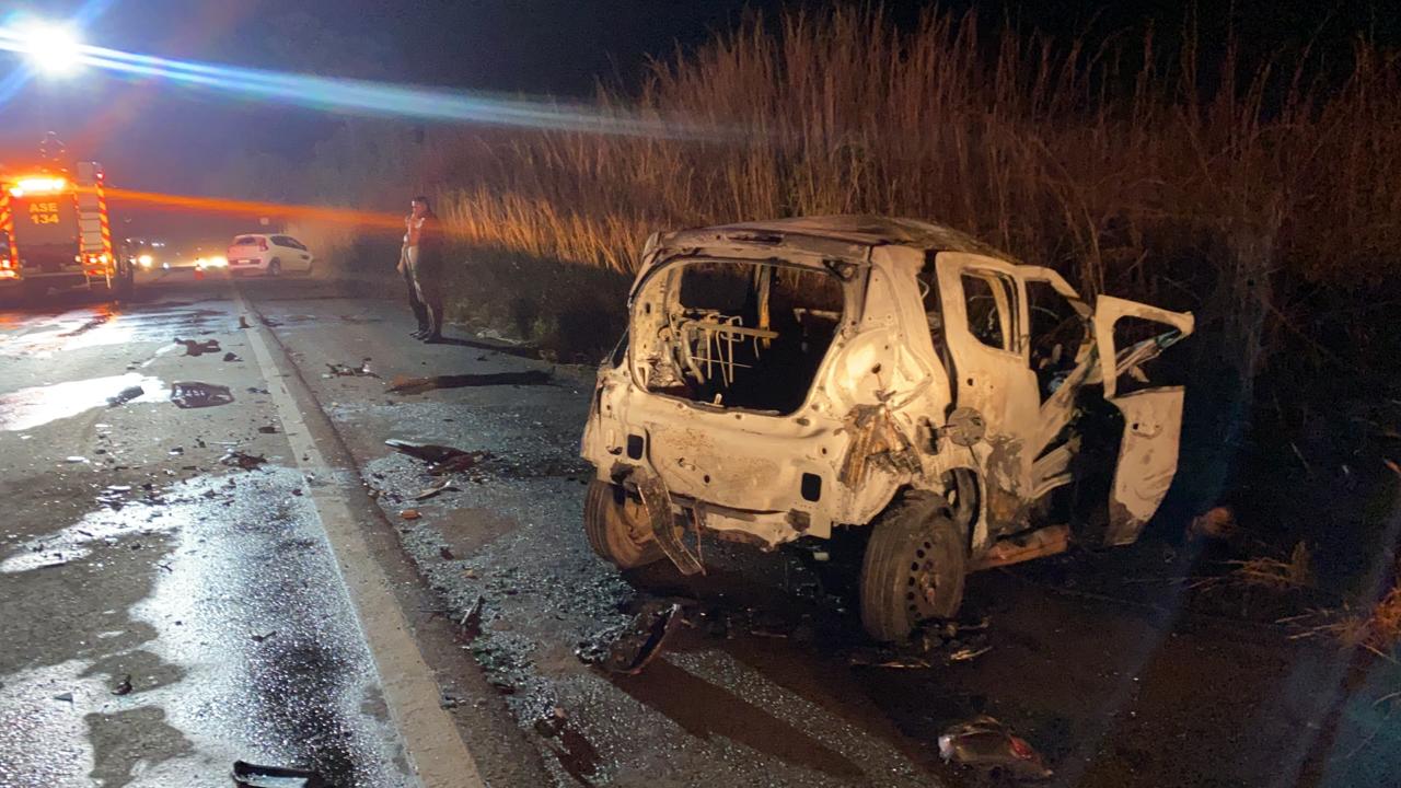 Veículo ficou quase que completamente destruído após o acidente. Foto: Divulgação/CBMDF