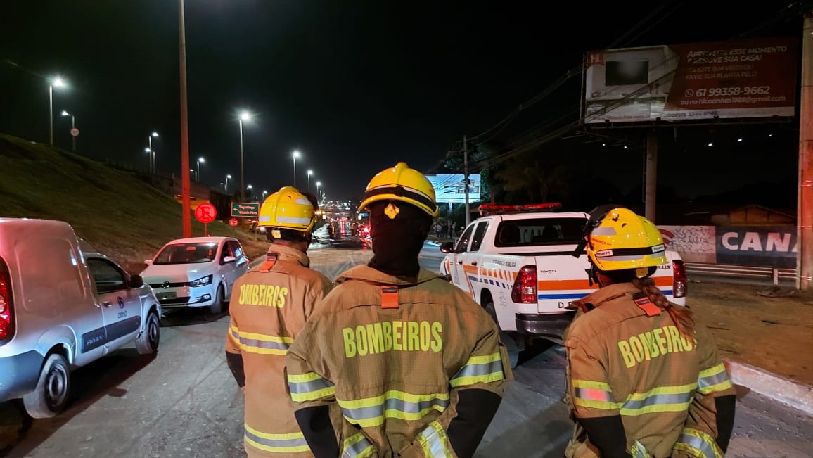 Uma adutora da Caesb localizada no viaduto Israel Pinheiro, na marginal da saída de Águas Claras para a Estrada Parque Taguatinga (EPTG), se rompeu na noite de segunda-feira (12).