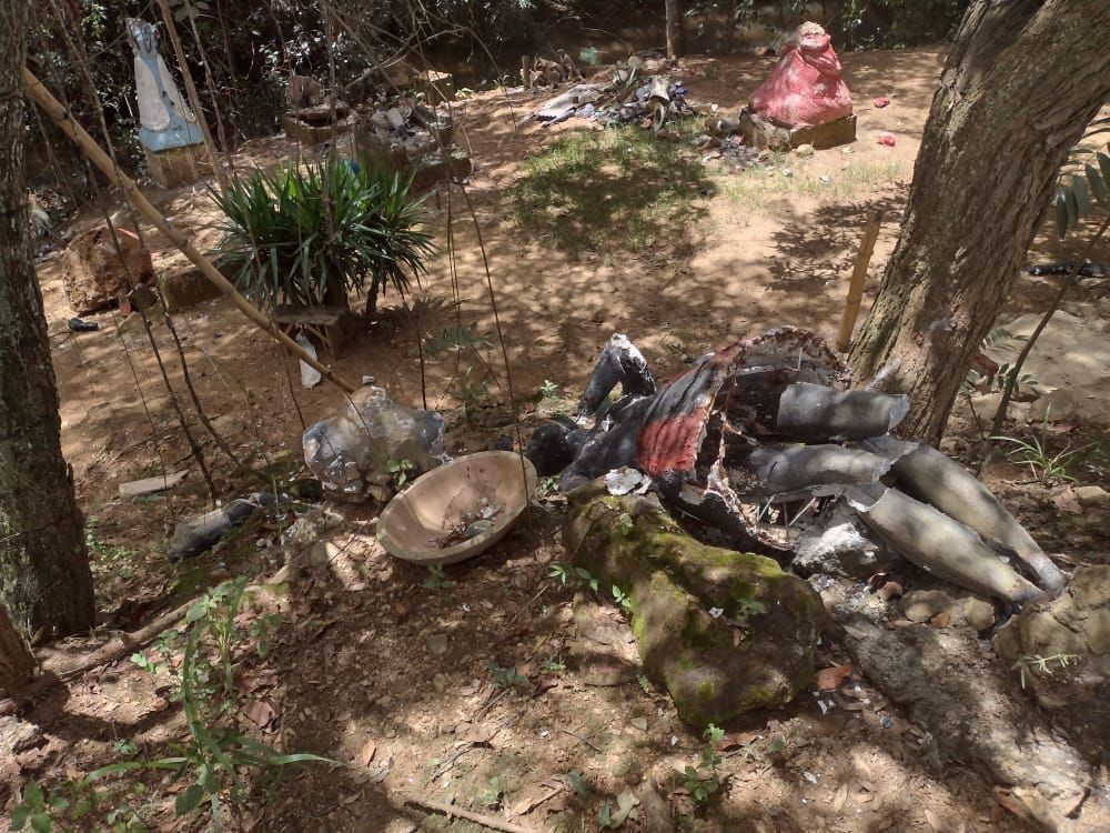 Mas esse ataque, segundo ela, não foi tão brutal quanto o último sofrido. Neste, imagens religiosas foram quebradas por um homem que invadiu o terreiro. Ele portava uma faca e pedras.
