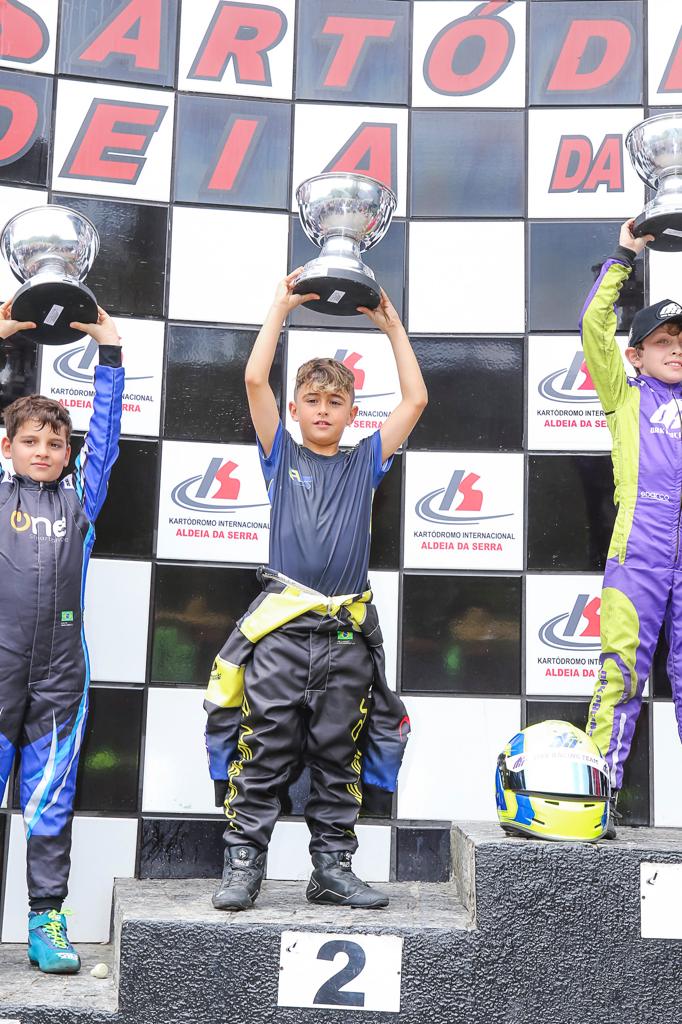 O segundo lugar no pódio da categoria Mirim foi alcançado depois de duas belas corridas disputadas neste sábado (28), no kartódromo Internacional Aldeia da Serra, em Itapevi-SP. Álvaro Medeiros saiu do 3º lugar do grid, brigou pela liderança e foi o segundo piloto a cruzar a linha de chegada na primeira bateria válida pela final do segundo turno da Copa São Paulo Light de kart e 9ª etapa da competição.