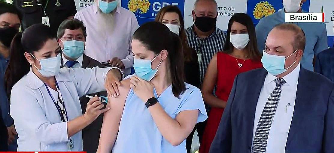 O Distrito Federal, enfim, deu início à vacinação contra covid-19 nesta terça-feira (10). A enfermeira Lídia Rodrigues Marques, 31 anos, que trabalha no box de emergência do pronto-socorro do Hospital Regional da Asa Norte (Hran), é a primeira cidadã do DF a receber o imunizante.