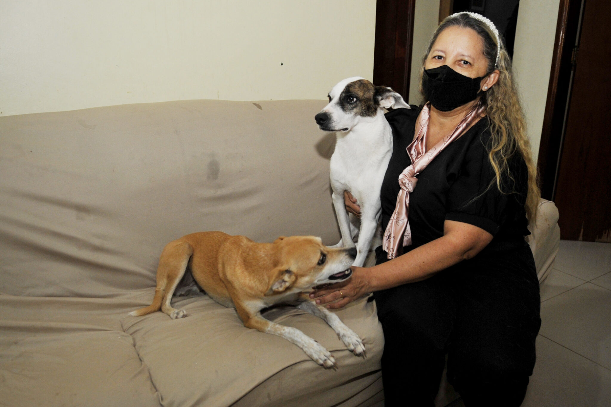 Benuélia é a segunda vítima de maus-tratos adotada por Gercina. A primeira foi Nina, uma cadela que a costureira flagrou apanhando de um homem. “Bateu nela com uma barra de ferro”, relembra. “Peguei a cachorrinha e fui direto para o veterinário. Lá, descobri que ela também estava doente, com cinomose”. Foram meses de dedicação e carinho até que Nina estivesse recuperada. “Hoje, as duas estão felizes e saudáveis”, comemora a costureira.