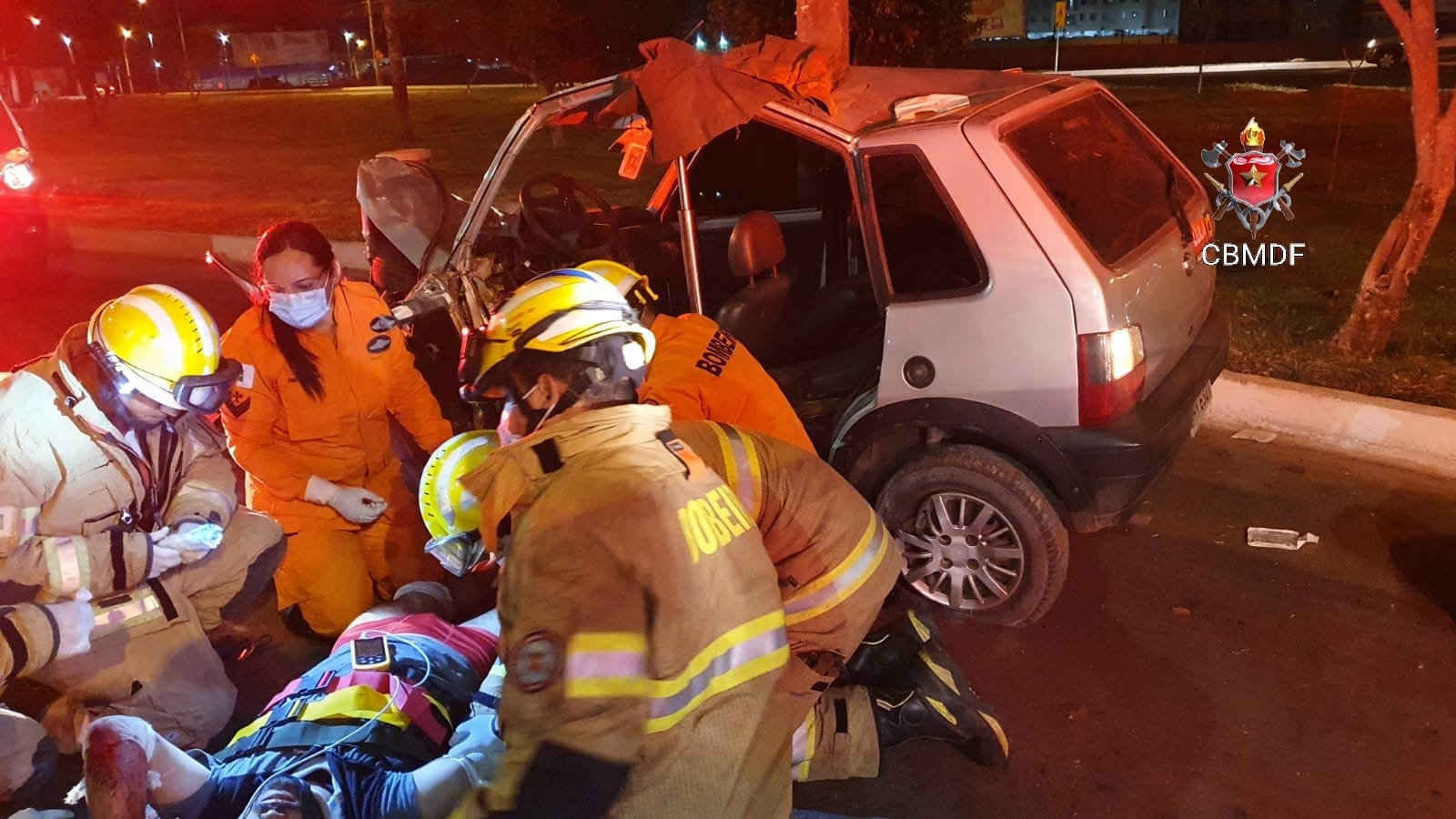O Fiat Uno de cor prata estava com duas pessoas e bateu em um poste. O condutor, de 27 anos, teve que ser retirado do meio das ferragens, e foi transportado pelo CBMDF ao Hospital de Base com suspeita de fratura no fêmur e traumatismo craniano.