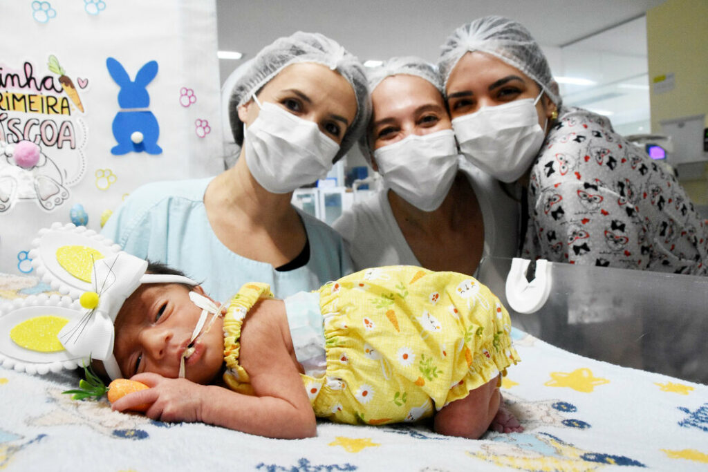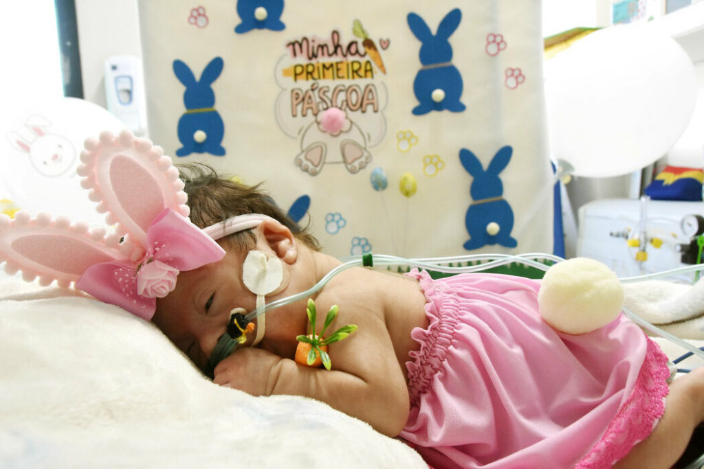 Nesse domingo (09), os 35 bebês da UTI Neonatal do Hospital Materno Infantil de Brasília (Hmib) se transformaram em coelhinhos para um ensaio fotográfico especial para sua primeira Páscoa.