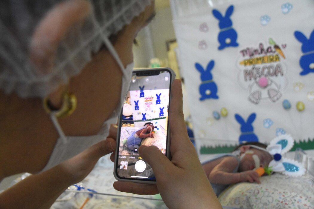 Nesse domingo (09), os 35 bebês da UTI Neonatal do Hospital Materno Infantil de Brasília (Hmib) se transformaram em coelhinhos para um ensaio fotográfico especial para sua primeira Páscoa.