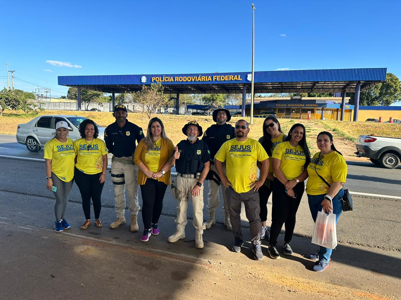 A rotina dos motoristas e pedestres que passavam pela BR-070, no Km 16,5, foi diferente na tarde desta quarta-feira (26). A Secretaria de Justiça e Cidadania do Distrito Federal (Sejus-DF) e a Polícia Rodoviária Federal (PRF) se uniram na ação “Esse crime é real”, para distribuir materiais informativos e sensibilizar a população sobre tráfico de pessoas com uma blitz educativa.
