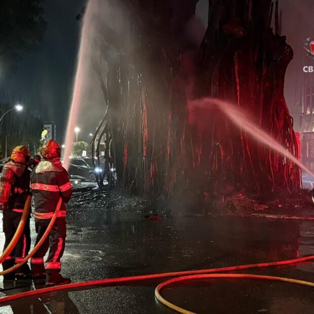 O Corpo de Bombeiros Militar do Distrito Federal (CBMDF) atuou no combate a um incêndio em uma árvore na noite de domingo (12/10/2025), por volta das 20h04, na SCRN 704/705, Bloco B, região do Plano Piloto.