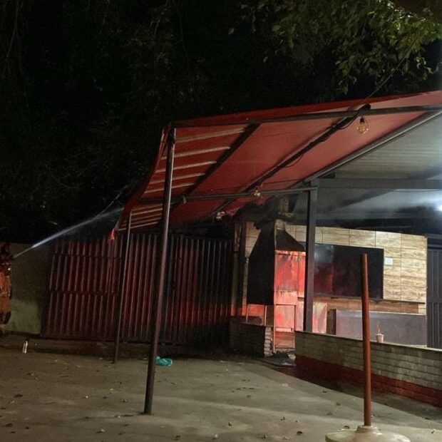 Ao chegarem ao local, os bombeiros encontraram a churrasqueira do estabelecimento em chamas. A equipe iniciou rapidamente o combate ao fogo com uma linha de mangueira, conseguindo conter o incêndio antes que se alastrasse por todo o quiosque.
