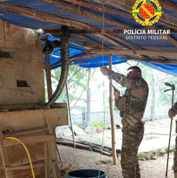 A Polícia Militar do Distrito Federal, por meio do Batalhão de Polícia Militar Ambiental (BPMA), resgatou, na tarde desta segunda-feira (22), uma serpente de grande porte em uma área residencial do Park Way.