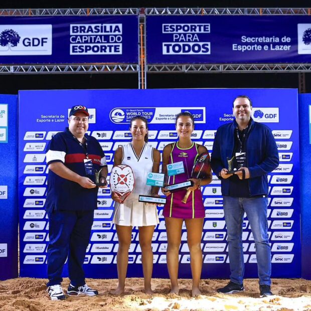 Realizado em Brasília, um dos principais torneios de beach tennis do mundo, o ITF Sand Series Brasília Classic 2024, chega ao fim. Nas finais disputadas neste sábado (15), a dupla brasileira Vitória Marchezini e Sophia Chow levou a melhor e conquistou o pódio da competição. O francês Nicolas Gianotti e o italiano Mattia Spoto foram os campeões no masculino, na Arena BRB.