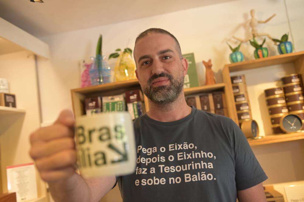 Nativo de Brasília, Raffael Innecco, 43, encontrou na capital a inspiração para a vida e para os negócios. Brasiliense apaixonado pela cidade, o arquiteto e a esposa Thatiana Dunice viram nas asas do Plano Piloto, nas curvas dos desenhos de Oscar Niemeyer e nas placas icônicas da capital a inspiração para colocar a identidade de Brasília em itens do dia a dia que poderiam ser vendidos na internet.