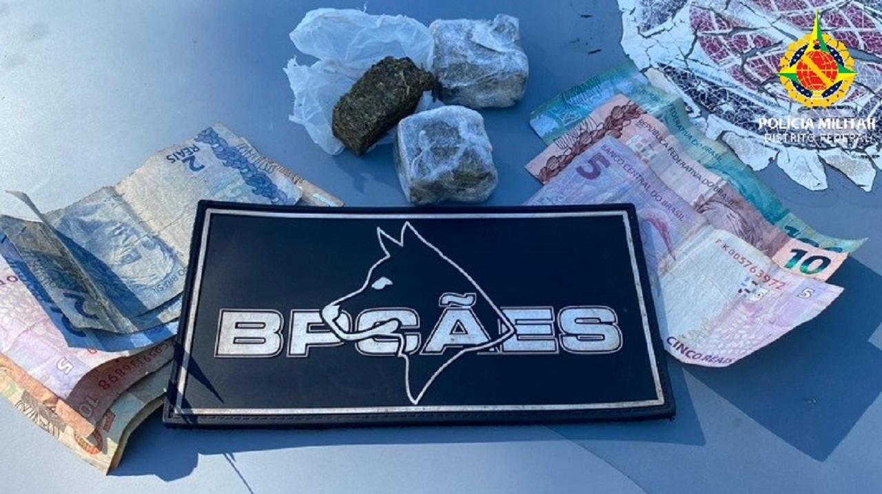 Na QR 110, a cadela Diana encontrou cinco porções de maconha. A droga pertencia ao jovem de 21 anos que estava no local. Ele foi preso em flagrante e levado para a 26ª DP.
