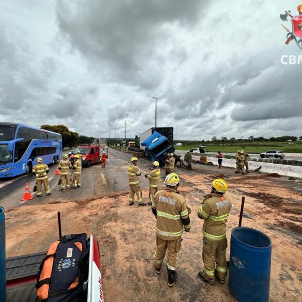 As equipes do CBMDF, PMDF e DER permanecem no local para concluir a limpeza e realizar a liberação total da pista com segurança.