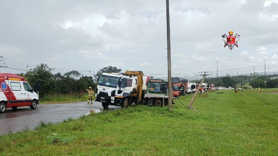 Um caminhão Ford/cargo Munck de cor branca, perdeu o controle e bateu em um poste de energia na BR-020, na região do Núcleo Rural Fumal, em Planaltina. Com a força da colisão, o poste de energia caiu. O Corpo de Bombeiros Militar do Distrito Federal (CBMDF) atendeu essa ocorrência, na manhã desta quinta-feira (24), com o empenho de quatro viaturas e 16 militares.