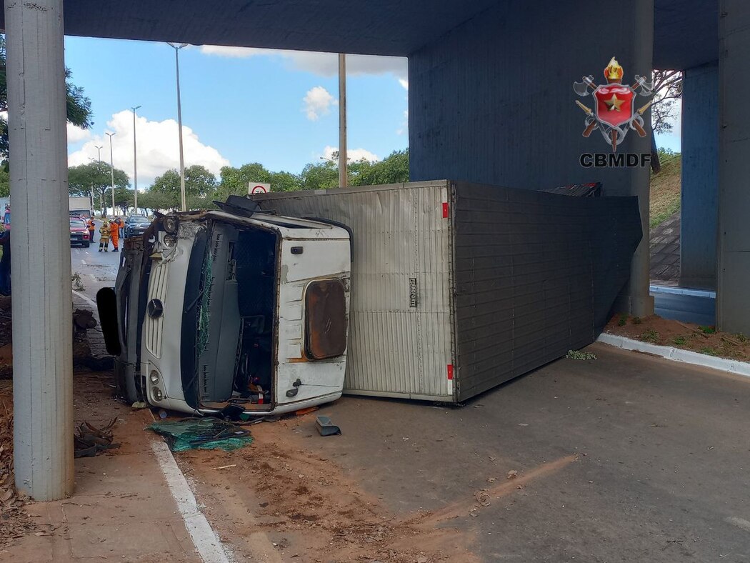 O Corpo de Bombeiros Militar do Distrito Federal (CBMDF) atendeu, no início da tarde desta segunda-feira (29), um caminhão que tombou na DF-010.