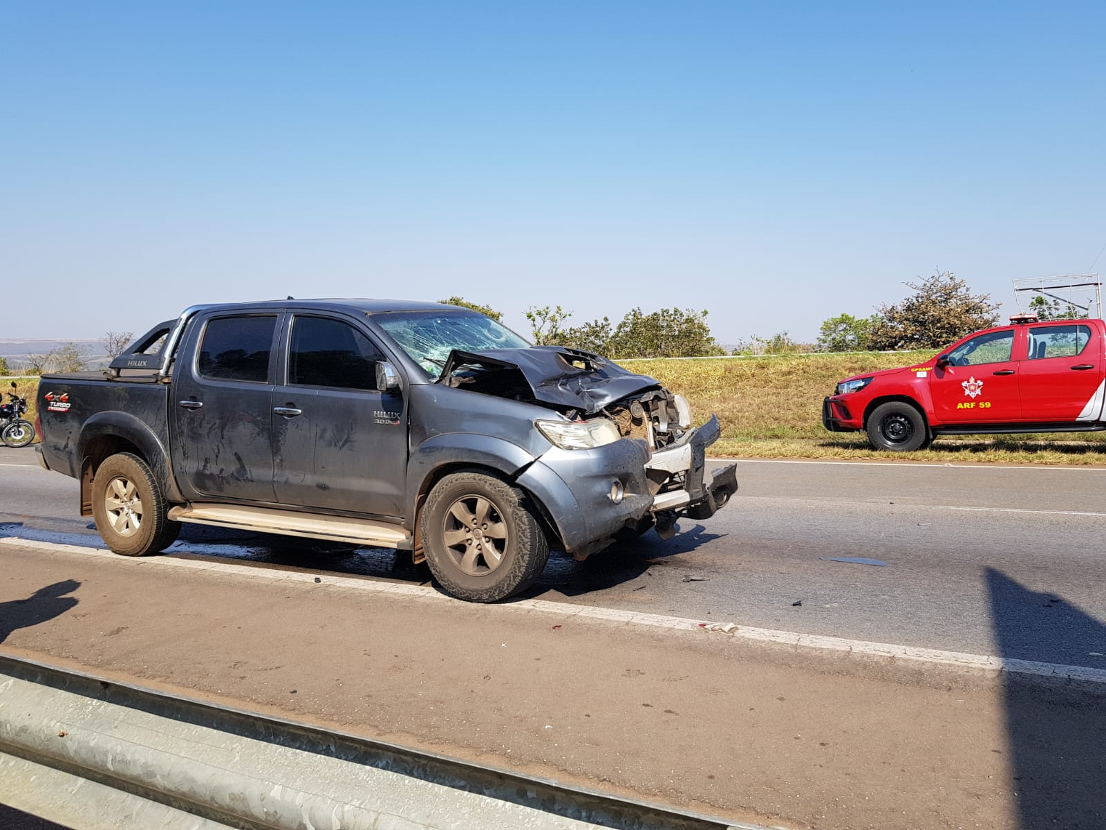 Já na caminhonete, houve três feridos. Iranilson Ribeiro da Silva, 51 anos, foi levado de helicóptero para o Hospital de Base com suspeita de hemorragia interna; Jefferson Aparecido Queiroz Tone, 36 anos, sentiu dores no tórax, nas costas e na coluna e foi encaminhado ao Hospital do Gama. Agostinho Kloppel, 55 anos, foi atendido pela concessionária da via. Não se sabe o estado de saúde dele.