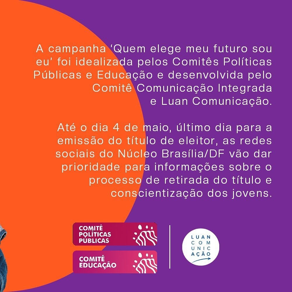 O Grupo Mulheres do Brasil, que congrega mais de 100 mil mulheres, atuando de forma voluntária por meio de 153 Núcleos, sendo 115 no Brasil e 38 no exterior, com diferentes ascendências étnicas e culturais, das mais variadas idades, classes sociais, credos, formação acadêmica e profissional. À frente da campanha “Quem vota o meu futuro sou eu” #decidaoseufuturo estão os Comitês de Políticas Públicas e o Comitê de Educação do Núcleo do Distrito Federal – DF.