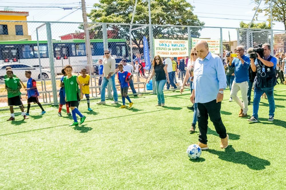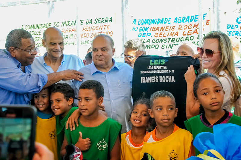 “Fico muito feliz quando entregamos um campo de futebol, porque uma criança, quando está jogando futebol, não tem tempo para se envolver com drogas”, declarou o governador. “Além desse campo, vamos trazer um ponto de encontro comunitário [PEC] e um parquinho para as crianças brincarem,” afirmou o governador Ibaneis.