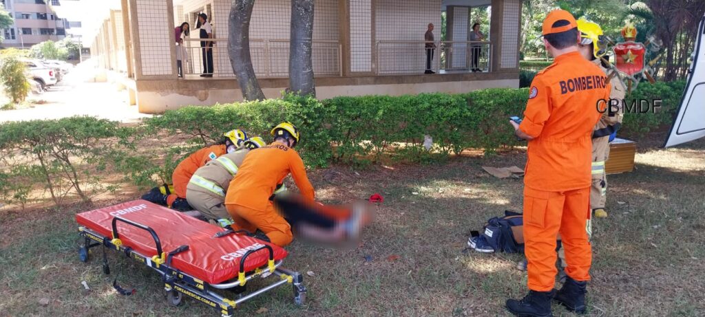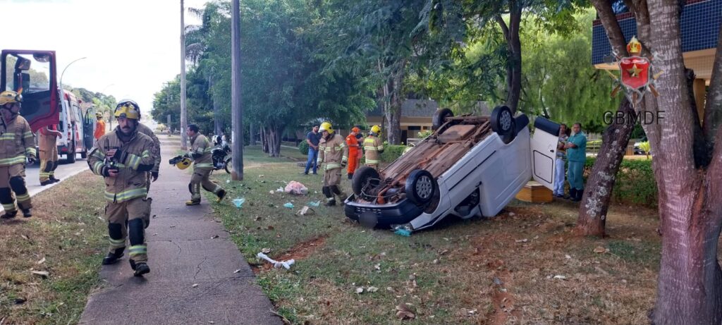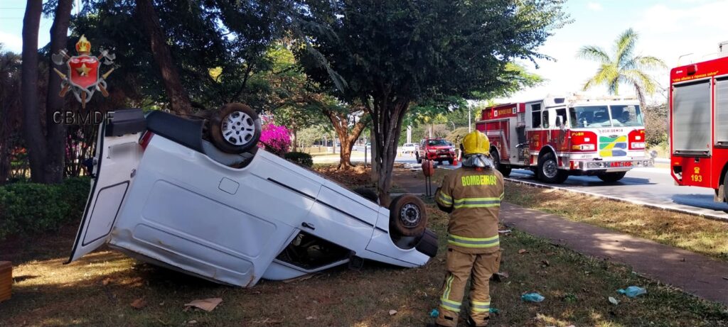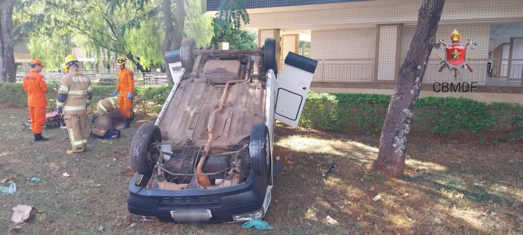 O Corpo de Bombeiros Militar do Distrito Federal (CBMDF) foi acionado às 10h52 e enviou três viaturas para atender à ocorrência. No local, os bombeiros encontraram um Fiat Fiorino branco capotado, apoiado pelo teto às margens da via.